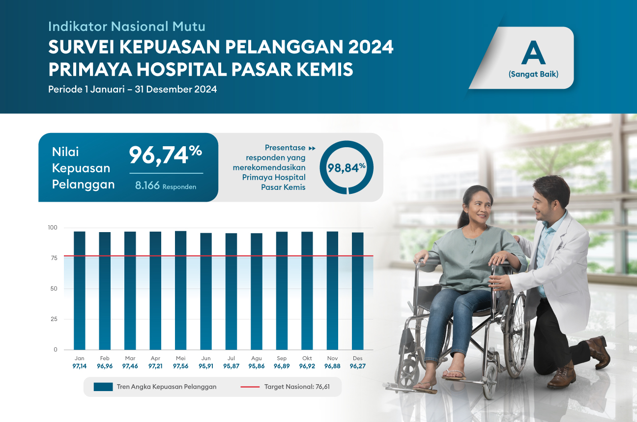 Primaya Hospital Pasar Kemis memahami kekhawatiran keluarga serta kerabat pasien untuk menjenguk dan memberikan dukungan moril. Namun, mohon kebijaksanaan dari keluarga serta kerabat pasien untuk mempertimbangkan kebutuhan pasien beristirahat demi kesembuhan yang lebih cepat dan berkualitas. Untuk itu Primaya Hospital Pasar Kemis membatasi jam besuk dari pukul 11.00 – 13.00 WIB dan 17.00 – 19.00 WIB